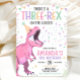 Invitación Pink Dinosaur Birthday Invitation Editable Three 3