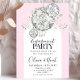 ¡Celebra el amor con un poco de brillo! Esta invitación a la fiesta de compromiso de moda incluye bolas de discoteca brillantes, flores blancas suaves y luces impresas brillantes, perfectas para una noche de glam de baile y celebración. Personalizar con sus nombres, fecha y detalles de fiesta para una invitación divertida y moderna, ideal para discotecas, discotecas o elegantes temas nocturnos. (Nota: se imprime el efecto brillo, no el Relieve metalizado real ni el purpurina.)