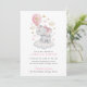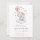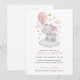 Invitación Pink Elephant Baptism Clouds Balloon Watercolor