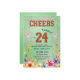 A modern design featuring a dark gold glitter number 24 with pink and emerald glitter and colorful flowers on the bottom. Customize the details for a chic Birthday Celebration.