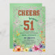 A modern design featuring a dark gold glitter number 51 with pink and emerald glitter and colorful flowers on the bottom. Customize the details for a chic Birthday Celebration.