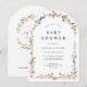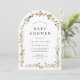 Perfect for a baby shower celebrating a little girl, this floral arch invitation pairs beautifully with coordinated décor and matching stationery.