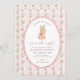 Celebrate your little bunny with this sweet baby shower invitation featuring soft pink stripes, vintage roses, and an adorable watercolor bunny illustration.