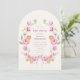 Celebrate a special baby shower with these enchanting floral arch invitations. Featuring a delicate watercolor floral wreath in soft pinks and oranges, this design sets a whimsical tone for your event. The arch shape adds a unique and elegant touch, while the prominent QR code allows guests to easily RSVP digitally. Perfect for a mom-to-be expecting a baby girl, this invitation blends classic charm with modern convenience for a memorable celebration.