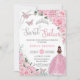 Invitación Pink Floral Light Brown Princess Sweet 16 Birthday