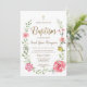 Invitación Pink Floral Watercolor Baptism Gold Cross Script