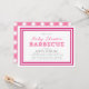Esta invitación a la ducha para bebés tiene bordes rosas oscuros en la parte delantera y un patrón de gingham rosa en la parte trasera. Personalízalo reemplazando el texto del marcador de posición. Para obtener más opciones como cambiar el tipo de letra, su tamaño y espaciado entre letras haga clic en el botón "Personalizar". *Tenga en cuenta que la marca de agua Zazzle que aparece en la vista previa del zoom NO aparecerá en el producto impreso final. © Rosewood y Citrus