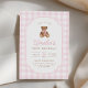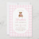 Invitación Pink Gingham Teddy Bear Beary First Birthday