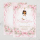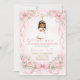Celebrate her sacred milestone with this elegant pink floral First Holy Communion invitation. Designed with soft blush roses, delicate greenery, romantic satin bows, and a subtle gold cross accent, this invitation creates a timeless and refined look.