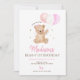 Invitación Pink Girl Teddy Bear Balloon First Birthday