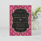 Invitación Pink & Gold Heart Damask Galentine's Dinner Party