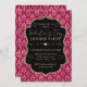 Invitación Pink & Gold Heart Damask Valentine's Dinner Party
