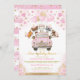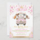 Beep, Honk, Grita y Ola! Invite a sus huéspedes a que conduzcan en una ducha de bebé con esta adorable invitación que incluye confetti de corazones rosados y dorados, flores de acuarela ruidosas y bonitos animales de bosque en un coche rosa bonito