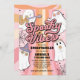 ¡Una invitación de fiesta de cumpleaños de Spooky Vibes para una fiesta de cumpleaños con temática rosa de Halloween! Con lindos ilustraciones hippie fantasma y tipografía retro.