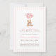 Invitación Pink Heart Balloon Teddy Bear 1st Birthday