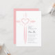 Celebrate a beautiful step in your daughter’s faith journey with this elegant pink heart cross First Communion invitation. A soft blush cross highlighted by a delicate heart and radiant lines creates a meaningful, modern symbol while keeping the overall design clean, timeless, and feminine.