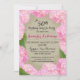 Las hortensias rosas bonitos sobre la burlap crean un marco para esta elegante invitación al cumpleaños de un fiesta de jardín. texto personalizar para cualquier ocasión.
