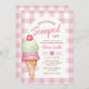 Invitación Pink Ice Cream Bow Gingham Bridal Shower