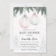 Celebra la próxima llegada de tu bebé con nuestra Invitación de Baby Shower a la mora rosada. Con un hermoso diseño de bolas para Navidades rosados y plateados, esta invitación es perfecta para una celebración de invierno en honor de su bebé. BBS549