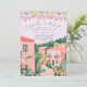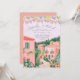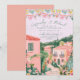 This destination wedding invitation features painted artwork of a Mexican town scene with papel picado banners on top. All the important wedding details can be personalized. Colors include green, pink, white and coral.