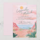 This destination wedding invitation features painted artwork of a Mexican desert beach scene. All the important wedding details can be personalized. Colors include green, pink, white and coral. Text in green.