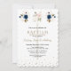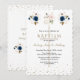 Invitación Pink Navy Blue Floral Gold Triplets Baptism