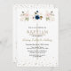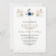 Invitación Pink Navy Blue Flowers Gold Triplets Baptism