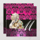 Invitación PINK, NEGRO, PURPLE, DAMASK JEWEL MONOGRAM fuchsia