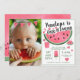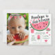 Una verde rosa dulce en una invitación de fiesta de primer cumpleaños con tema melón para el chica melón. Reemplace la foto de marcador de posición con su propia foto de bebé. ¡Un gran tema de cumpleaños para el verano! La parte de atrás de la invitación es una sandía sangrando fuera de la página, verde rosa y semillas. Consulte la colección completa de elementos coincidentes para este diseño en: https://www.zazzle.com/collections/one_in_a_melon_baby_birthday_party-119209815727560938