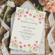 Pretty floral wedding invitation with enchanting pink orange and yellow flowers. The watercolor style artwork captures the delicate beauty of wildflowers in full bloom, creating a romantic and ethereal aesthetic. The charming floral border gracefully frames your personalized wedding details, creating a beautiful keepsake for your guests. Perfect for a spring or summer wedding with a bohemian or garden theme. Please browse my store in the Wildflower Bloom Collection, for matching items