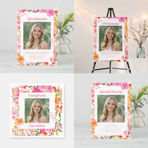 Invitación Pink Orange Floral Graduation Party Photo 2026