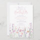 This sweet bridal shower invitation features hand-painted pastel florals and butterflies in soft lavender, blush, peach, and sage green tones.