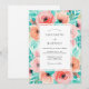 This design showcases a vibrant array of watercolor roses and ranunculus in warm pink and peach tones. Delicate teal and aqua foliage creates a refreshing contrast, providing a bright and airy aesthetic. Perfect for a sunny seasonal ceremony, the artistic botanical elements evoke a romantic and cheerful atmosphere for your special occasion.