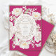 Lovely vintage romantic soft colors of lillies of the valley and peonies done in pinks and ivory shades. Perfect for any season wedding. All done on a pink fuscia background with a faux gold rustic frame.
