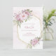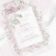 A soft pink floral wedding invitation with pink peonies in a polygonal frame