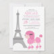 Invitación Pink Poodle Eiffel Tower Adorable Birday Party