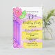 Invite a sus huéspedes con estilo con esta invitación de cumpleaños de bonito que incluye una rebanada de pastel de cumpleaños con espuma violeta y rosas rosas rosas rosas. Los datos de su fiesta pueden ser personalizados por usted. Diseñado por los artistas ©Tim Coffey y Susan Coffey.