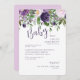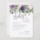 Invitación Baby Shower Purple/Lavender. Flores color agua morado y rosa. Elegante y sencillo.