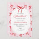 Invitación Pink Red Coquette Bow Valentine 1st Birthday