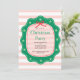 Invitación Pink Red Green Coquette Bow Stripe Christmas Party