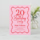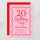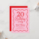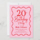 Invitación Pink Red Retro 20th Birthday Wavy Border