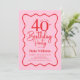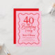 Invitación Pink Red Retro 40th Birthday Wavy Border