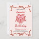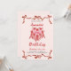 Invitación Pink Retro Cake and red Bow Coquette Birthday