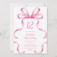 Invitación Pink Ribbon Coquette Bow 12th Birthday Invitation