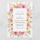 A delightful watercolor design featuring abundant pink roses and sunny yellow blossoms, framed by lush green foliage. The artistic brushstrokes create a soft, romantic mood perfect for a whimsical affair.