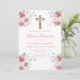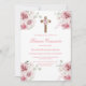 Pink rose floral first communion invitation in spanish for girl.