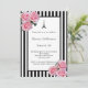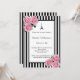 Invitación Pink roses black white stripes Paris Sweet 16