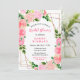 This fun and whimsical bridal shower invitation features watercolor pink roses and foliage on a gold geometric frame. The text combines handwritten script and serif fonts for a stylish and modern look. This is perfect for a spring or summer rustic bridal shower.