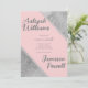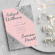 Elegant gray bold script calligraphy with trendy stylish blush pink and silver glitter geometric wedding invitations.