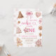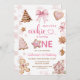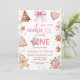 Invitación Pink Snowflakes Gingerbread Christmas 1st Birthday